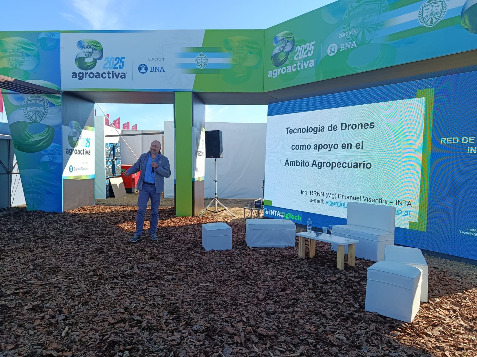 En el marco de AgroActiva 2025, el Anfiteatro de Tecnoplaza fue escenario de una destacada disertación a cargo del ingeniero Emanuel Visentini, especialista del INTA, quien vino a aportar su conocimiento innovador, en una charla denominada “Tecnología de drones como apoyo en el ámbito agropecuario”.